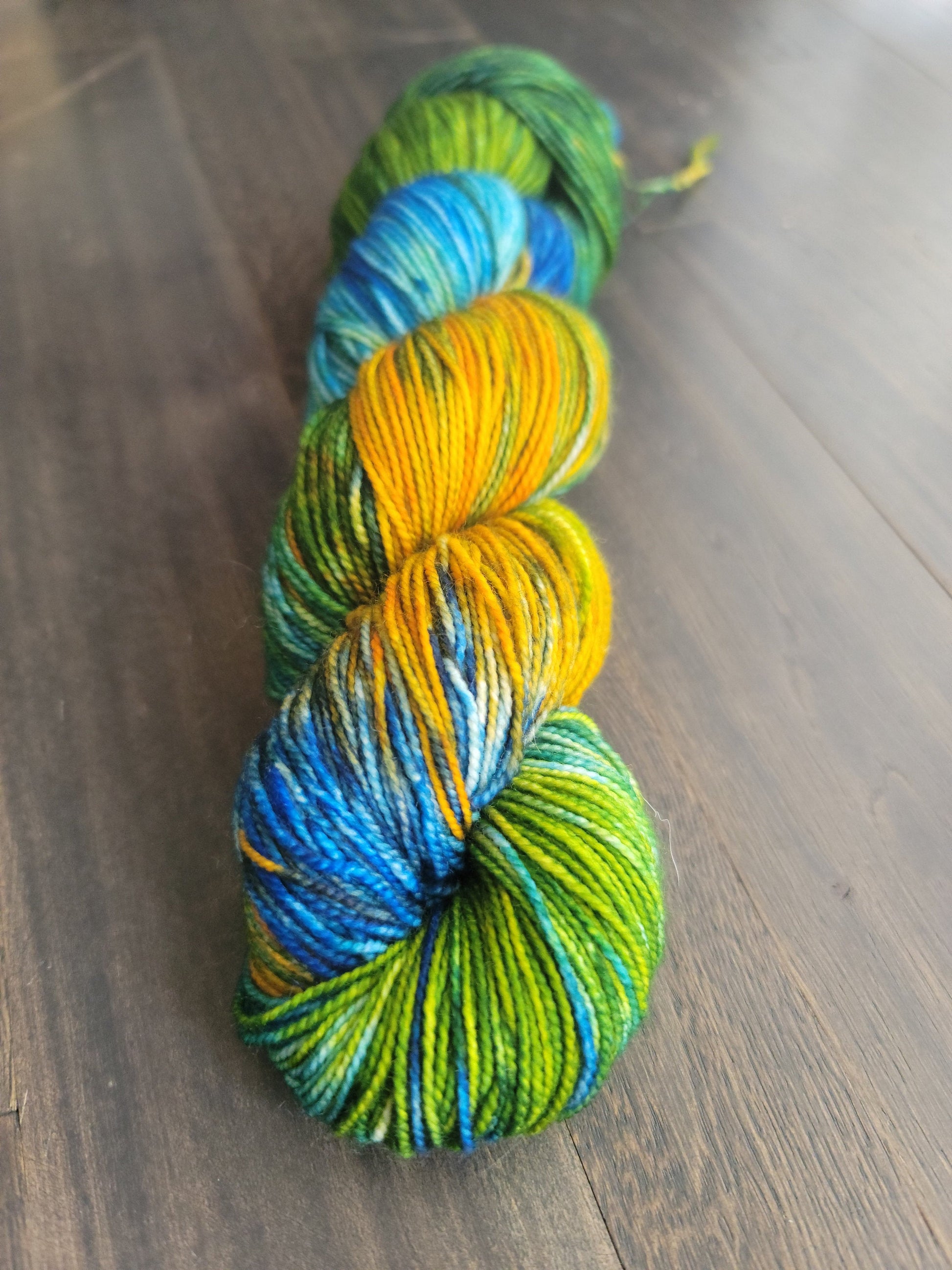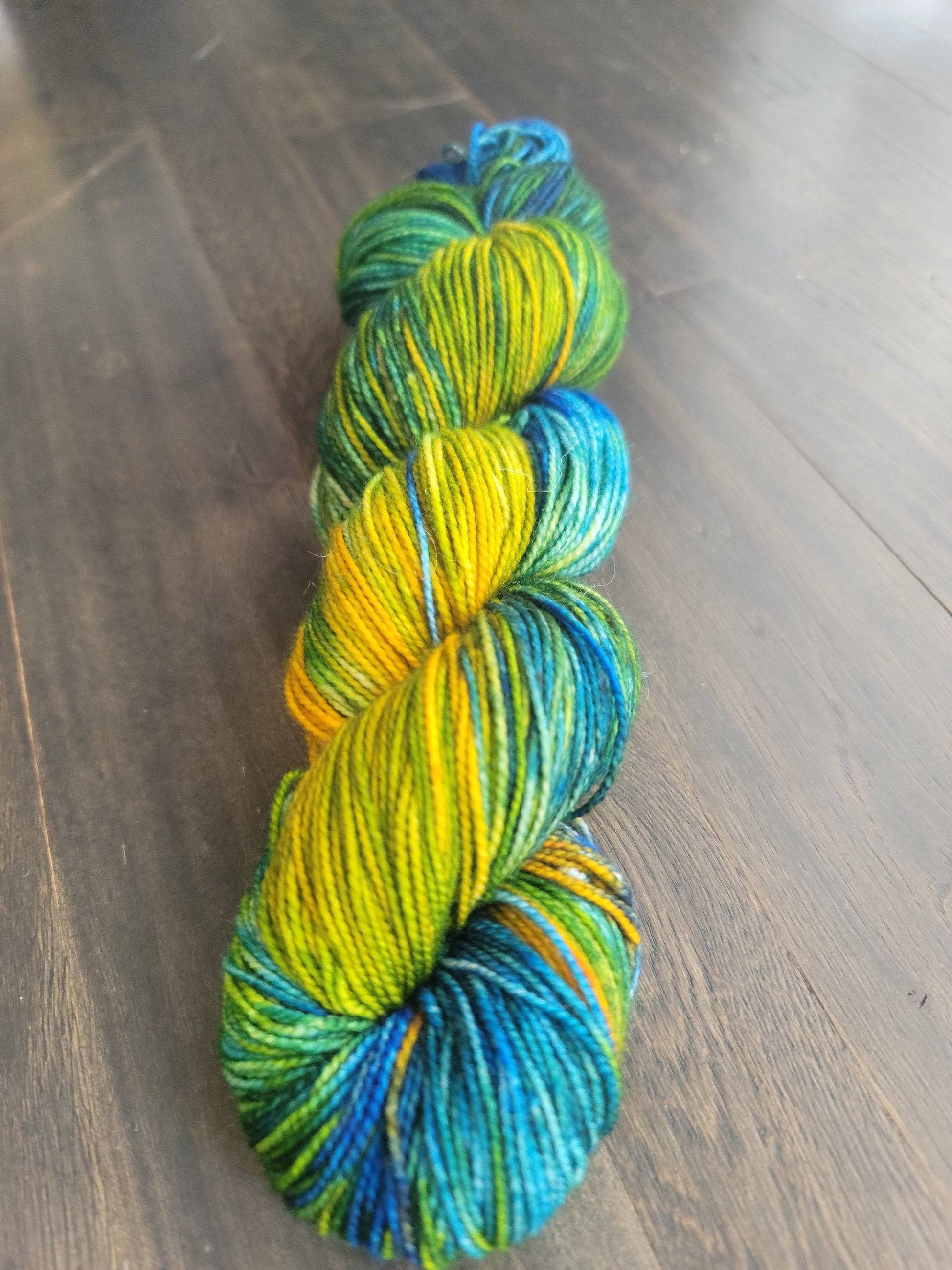 This hand dyed fiber is perfect for sock knitting but also great for shawls and other projects!