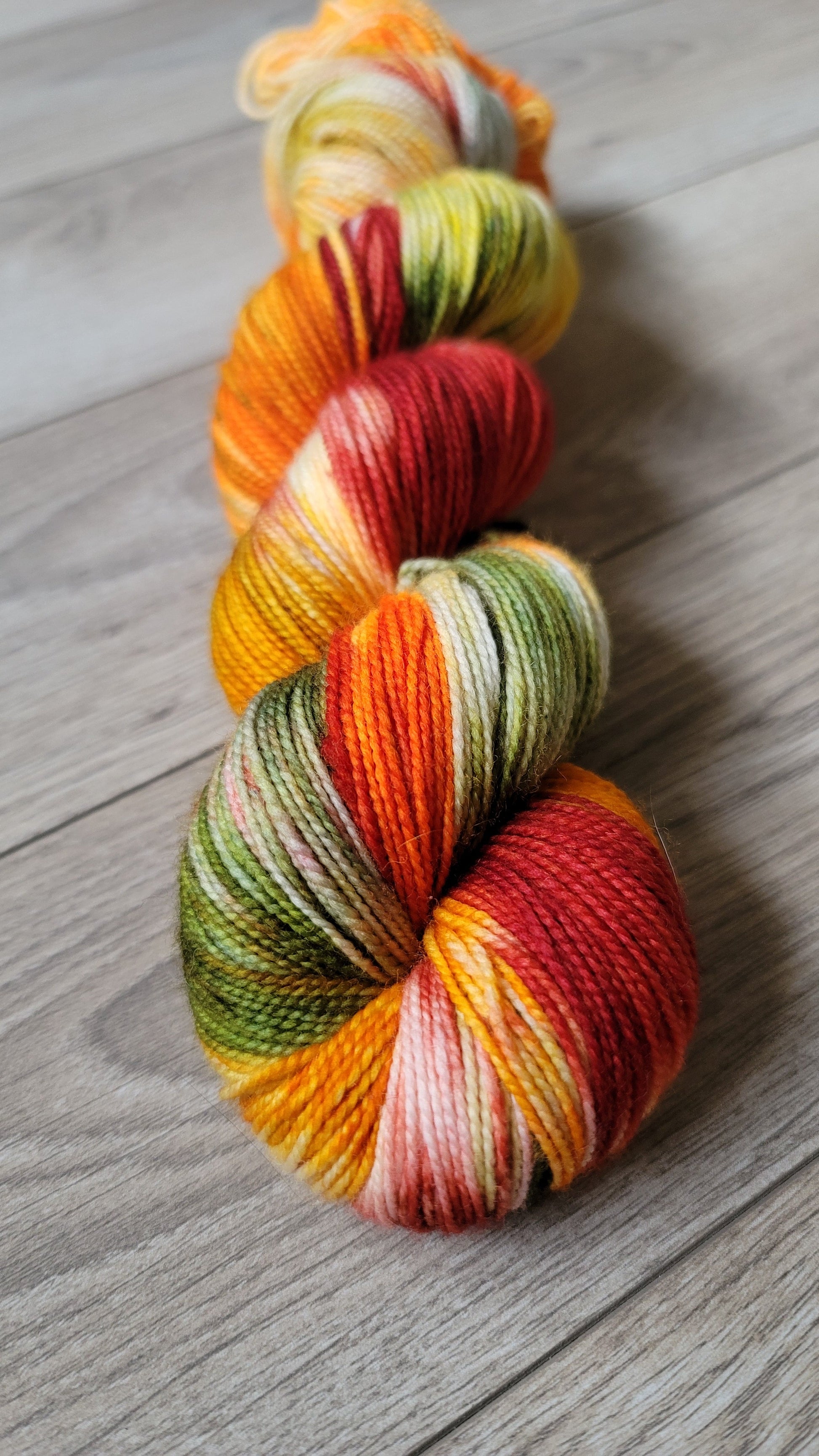 Skeins are dyed to order. There may be slight differences from skein to skein. If you are knitting with more than 1 skein, it is suggested to alternate between skeins to prevent any color pooling. Colors depicted in the pictures are as best represented as possible, however colors can vary slightly from monitor to monitor.