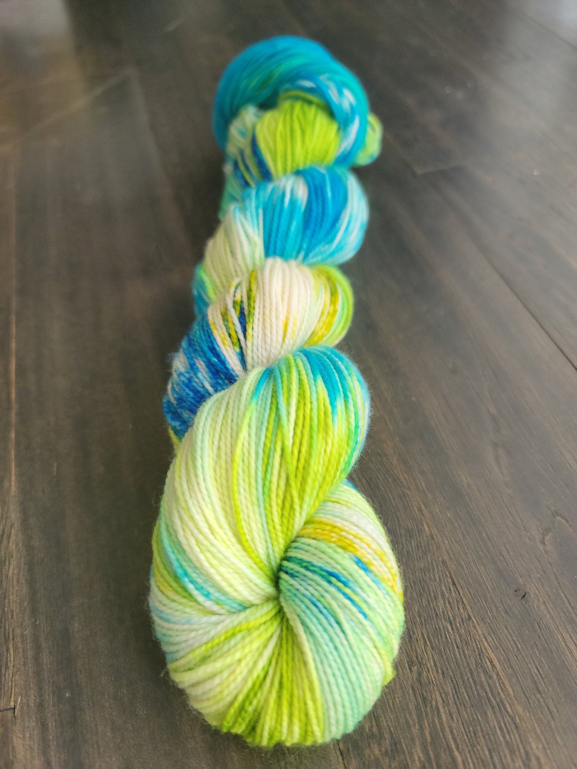 This hand dyed fiber is perfect for sock knitting but also great for shawls and other projects!