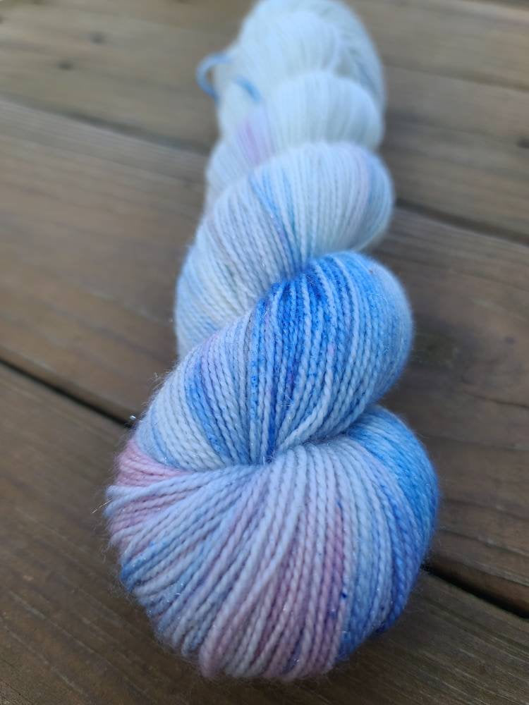 Weight: Sock/Fingering 75/20/5 SWmerino/Nylon/Silver Stellina 100g skein