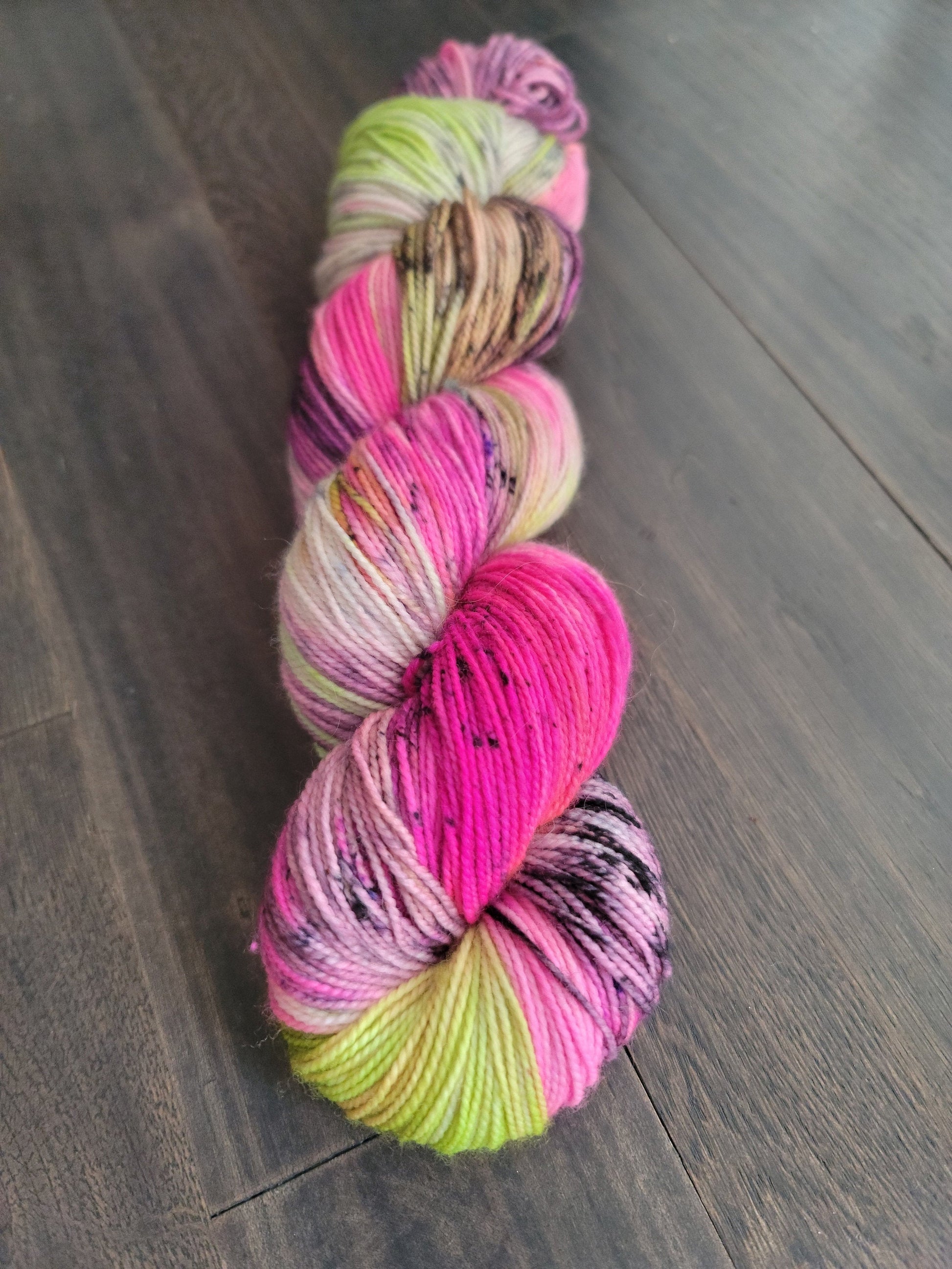 This hand dyed fiber is perfect for sock knitting but also great for shawls and other projects!